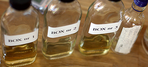 Tillbaka till Box, där vi fått tre prover utan någon närmare beskrivning än 1, 2 och 3. Den första flaskan att provas är ett rökigt destillat, och återigen imponeras panelen av Ådalens finess.