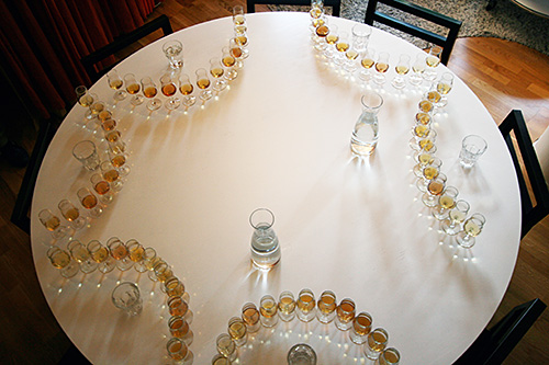 Provningen rullar oförtrutet vidare och nu är det 18-åringens tur att bedömas. Efter femton år på bourbonfat tas cirka 30% per batch ut och får mogna 3 år på Olorosofat. Därefter återförs den och blandas med bourbonfaten innan den buteljeras. Tomas är först ut och är mäkta imponerad: