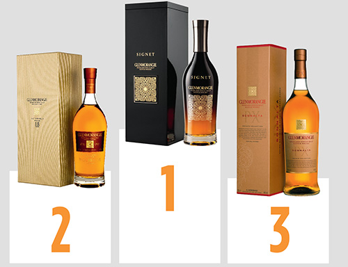 En av Glenmorangies prestigebuteljeringar är Signet som består av whisky delvis mältad på chokladmalt och lagrad på både bourbon och sherryfat. Etiketten ger inte någon information alls, men här används återigen Designer Casks till viss del, och man har stort spann på whiskyns åldrar som använts. Resultatet blir den mörkaste av alla Glenmorangies. Stor smak som hänger kvar länge.