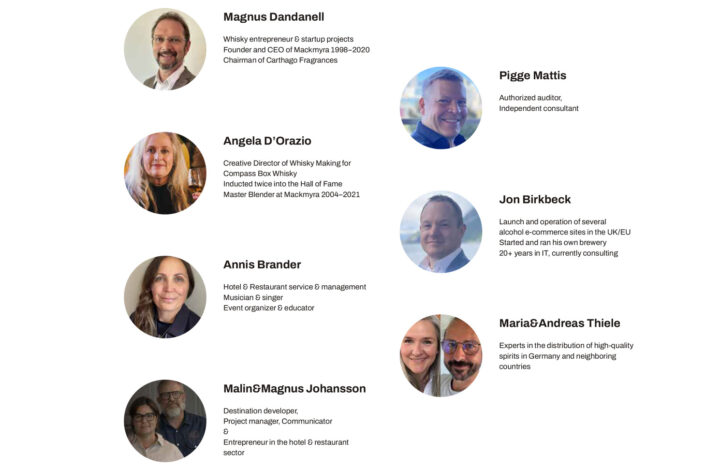 I dag är gruppen betydligt större och bredden på erfarenhet imponerande. Andreas Thiele har en lång bakgrund inom Mackmyras internationella försäljning och bor i Tyskland. Jon Birkbeck, även han med Mackmyra-erfarenhet, byggde upp företagets e-handel under pandemin och är numera baserad i Italien. Malin och Magnus Johansson driver Briq Hotell i Hova och har lång erfarenhet av restaurang och destinationsutveckling. Magnus Dandanell, en av Mackmyras grundare, bidrar med strategisk kunskap och branschkännedom.