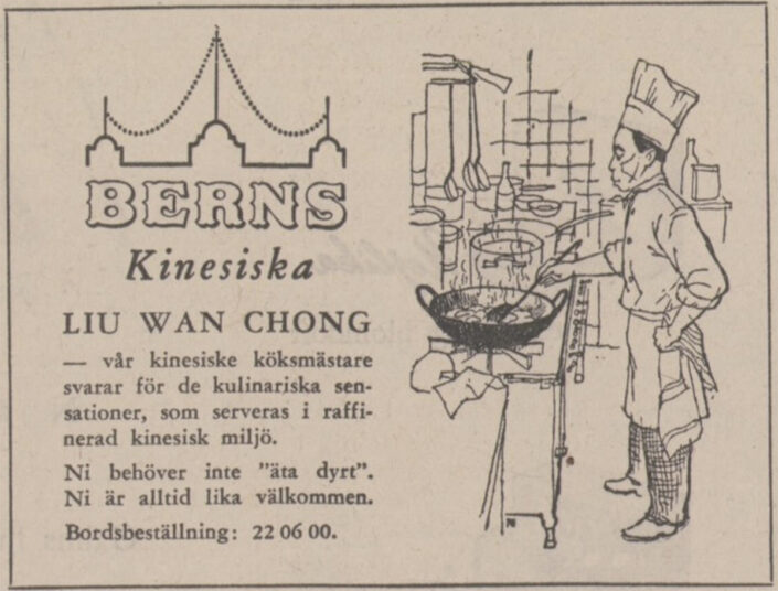 Morfar blev kvar i Sverige, jobbade en kort period på SKF, men hamnade sedan på Berns Asiatiska – som då hette Berns Kinesiska – och blev 1949 deras chefskock. Så småningom tar han sig till Köpenhamn, öppnar två restauranger där och flyttar därefter tillbaka till Göteborg där han öppnar klassikern Kinesiska Muren – Sveriges första renodlade kinarestaurang.