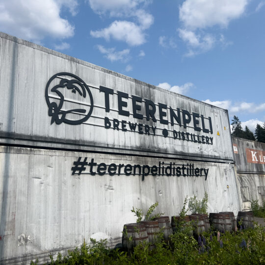 Nästa dag, efter lite egen tid att strosa runt Lahtis, så samlades vi på restaurangen Taivaanranta. Här i källaren, i vad som en gång var ett garage, startade Teerenpelis whiskydestilleringen 2002. Restaurangen var redan etablerad som bryggeri, men whiskyn blev ett nytt kapitel – och ett djärvt sådant. Då var det få som ens trodde på idén om en finsk single malt.